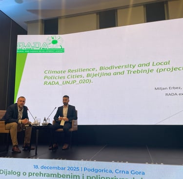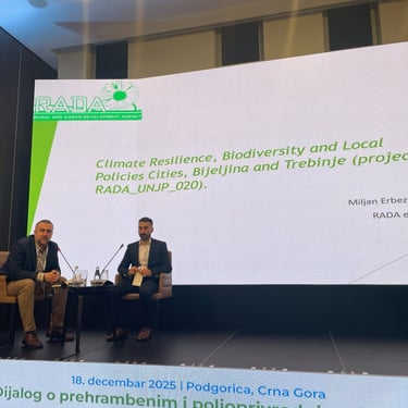 Predstavnici NGO RADA na Policy Dialogue skupu u Podgorici o transformaciji agroprehrambenih sistema Zapadnog Balkana U Podgorici je 18. decembra 2025. godine u organizaciji Svjetske organizacije za poljoprivredu i hranu (FAO) održan Policy Dialogue o ubrzavanju napretka ka održivim, inkluzivnim i otpornim agro-prehrambenim sistemima u zemljama Zapadnog Balkana. Skup je okupio predstavnike nadležnih ministarstava, međunarodnih organizacija, razvojnih partnera, akademske zajednice, civilnog društva i privatnog sektora iz Crne Gore, Bosne i Hercegovine, Srbije i Sjeverne Makedonije.