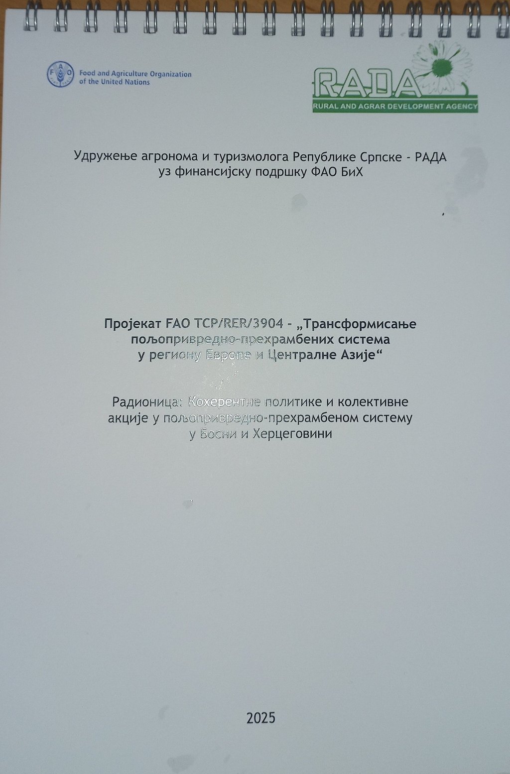 Dana 12.06.2025. godine u Banjaluci je održana radionica/diskusija "Koherentne politike i kolektivne akcije u poljoprivredno-prehrambenom sistemu u Bosni i Hercegovini." Koherentna politika i kolektivna akcija u svim poljoprivredno-prehrambenim sistemima su fundamentalni za ostvarivanje zdrave ishrane za sve. To je takođe podržano rastućim priznanjem, na globalnom nivou, potrebe za poboljšanjem kvaliteta ishrane i smanjenjem nejednakosti u pristupu nutritivno bogatoj, pristupačnoj i održivoj hrani. Usvajanje perspektive zdrave ishrane, pri čemu se potrebe i preferencije potrošača stavljaju u centar riješenja sistema ishrane kako bi se omogućila dugoročna promjena potrošnje kroz povezivanje potrošnje zdrave hrane sa tržištima, distribucijom, proizvodnjom i poljoprivredom čineći održivu, bezbijednu i zdravu ishranu dostupnom, pristupačnom i poželjnom za sve.
